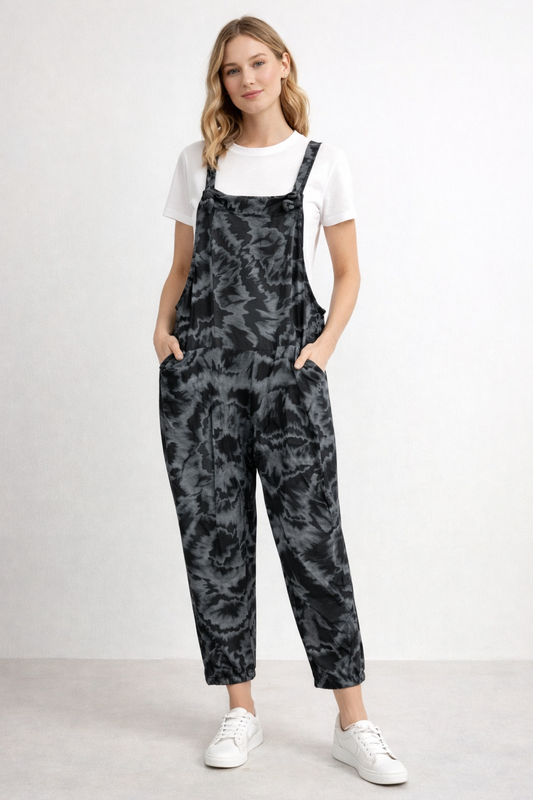 Tie-Dye Print Dungarees 3/4 Length