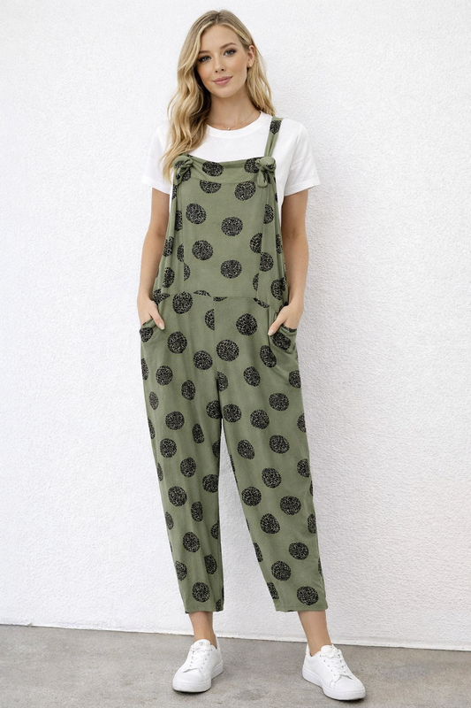 Leopard Print Polka Dots Dungarees 3/4 Length
