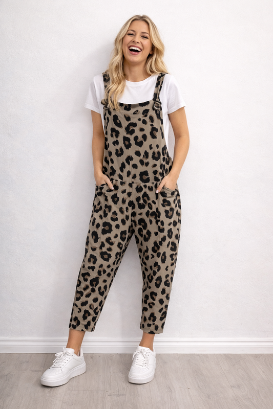 Leopard Print Dungarees 3/4 Length