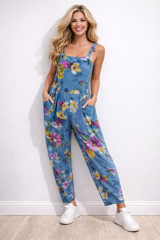 Floral Print Dungarees 3/4 Length