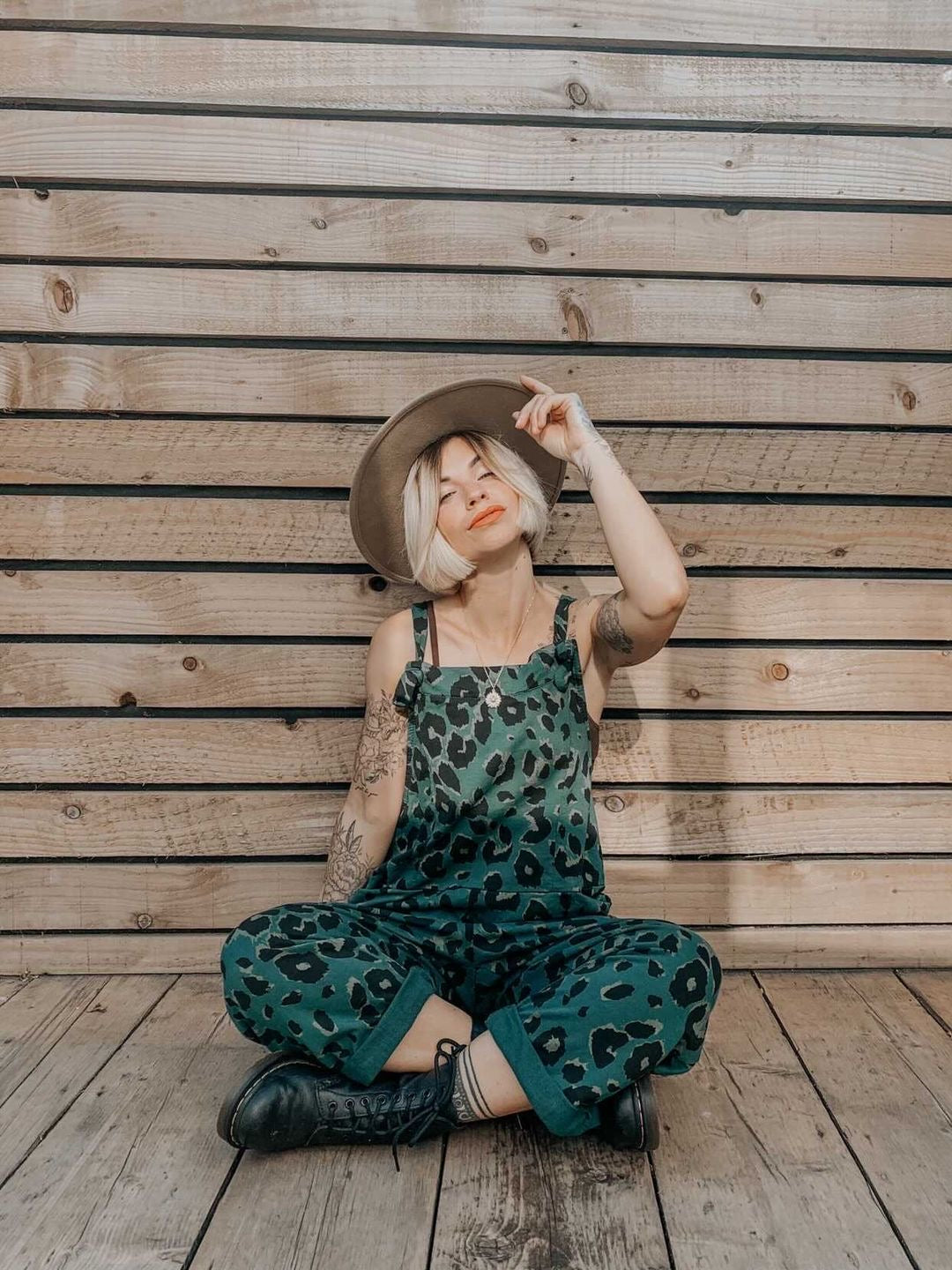 Abstract leopard print Dungarees 3/4 Length