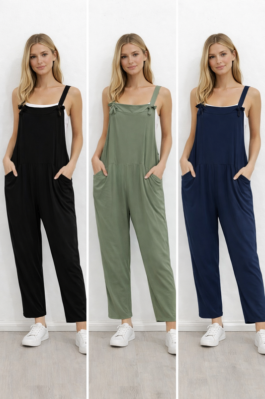 Plaine - Bow Detail Plain Dungarees